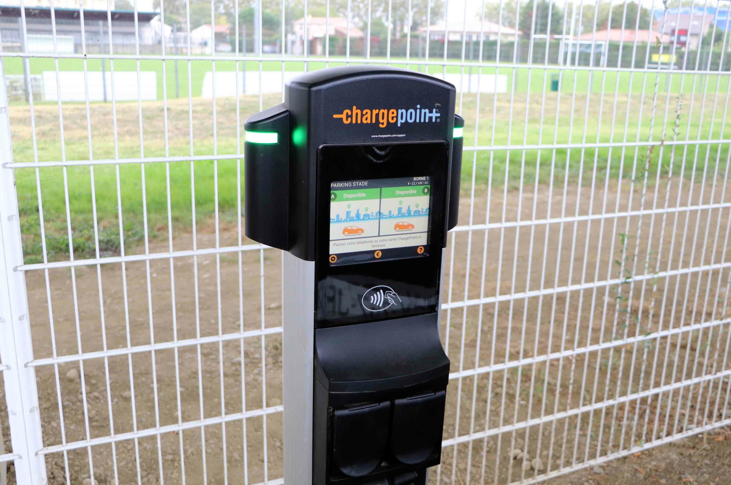 Les bornes de recharge de véhicule électrique sur le parking du stade municipal, avenue Salvador Allende