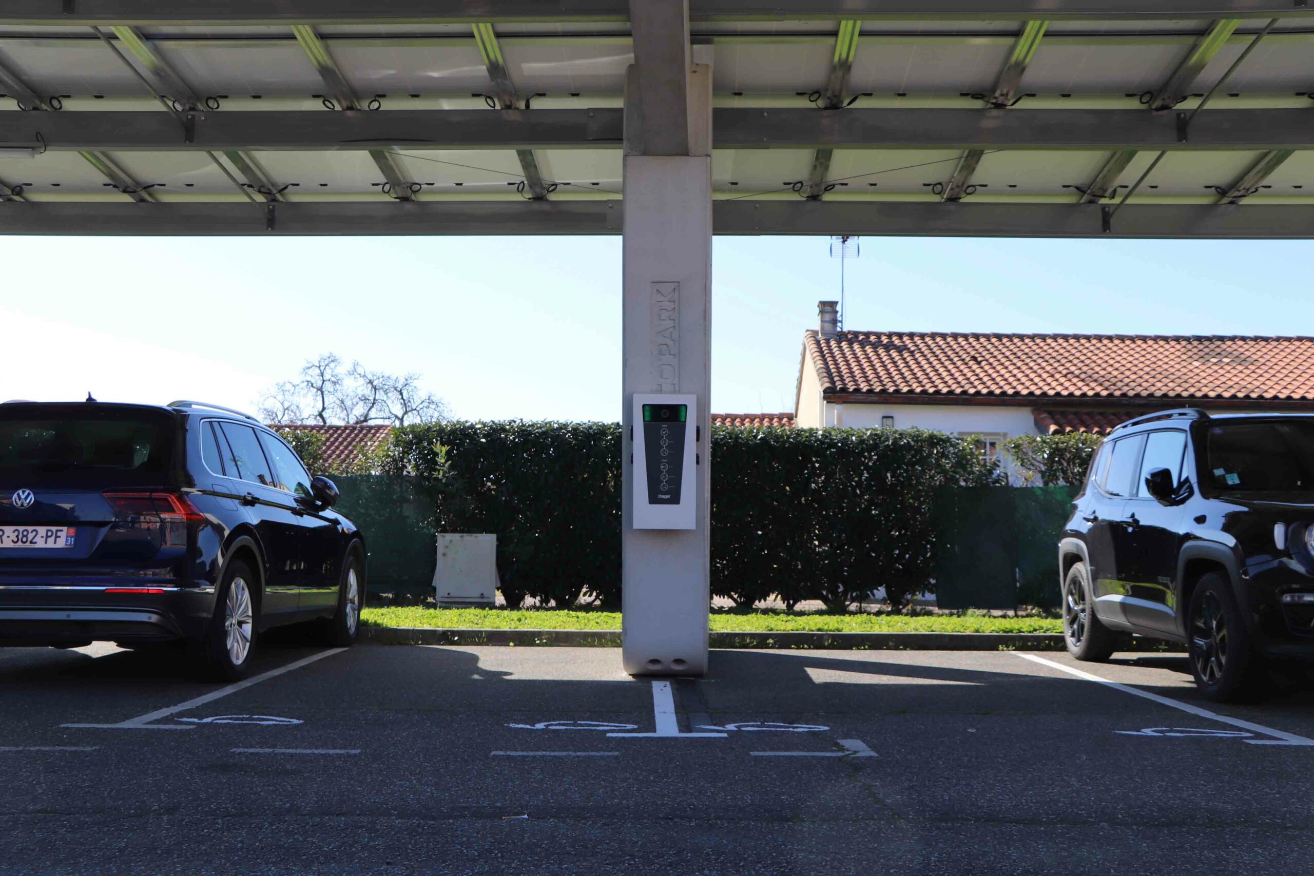Depuis l’installation d’ombrières photovoltaïques sur le parking de l’Hôtel de Ville et sur celui du stade municipal, la Ville propose aux automobilistes des bornes de recharge pouvant accueillir 2 véhicules électriques simultanément.