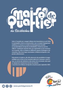 Polyvalente et moderne, facilement accessible, la Maison de Quartier du Récébédou offre désormais des possibilités d’usages multiples qui en font un lieu incontournable de la commune, ouvert à tous, au service des habitants et des acteurs de la vie locale, mais aussi un équipement résolument tourné vers demain.