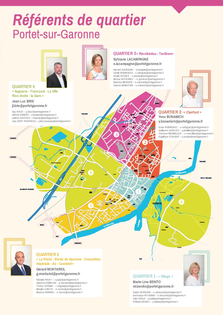 À l’écoute des préoccupations quotidiennes des Portésiens, la Municipalité souhaite favoriser la participation des habitants à la vie locale en développant les démarches d’information, de consultation et de concertation. C’est pourquoi, elle a mis en place des référents de quartier pour une citoyenneté active et plus de proximité. La commune a ainsi été découpée en 5 secteurs.
